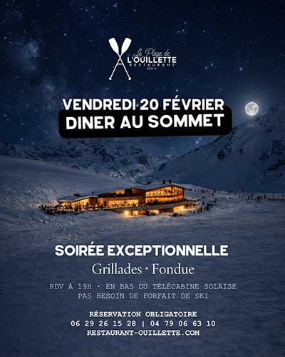 La cuisine est faite maison là-haut avec des produits frais. La Plage de l’Ouillette vous invite à une parenthèse gourmande et joyeuse de haute altitude face à l’une des vues les plus emblématiques du domaine skiable avalin.